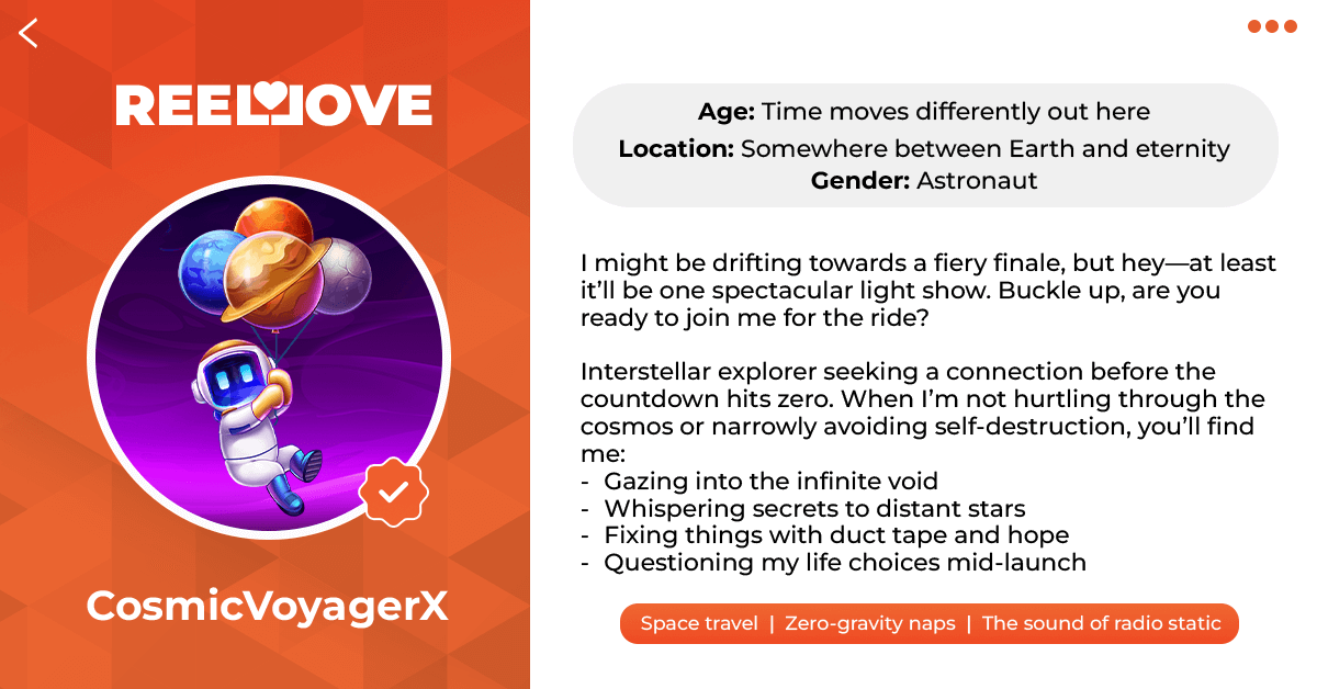 šŸ›ø Swipes right for: Stargazers, space philosophers, and thrill-seekers.
