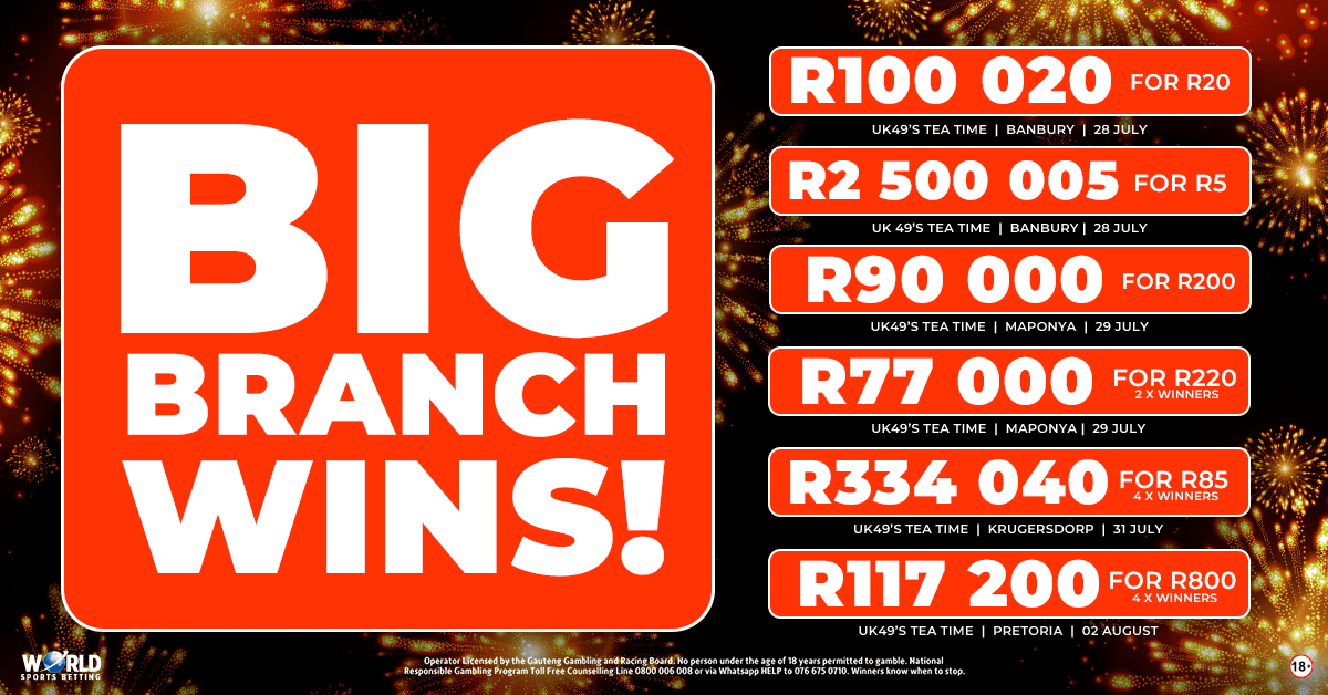 #WSB #BigWinners #UK49s #WorldSportsBetting #JackpotWinners #BetWithTheBest #LifeChangingWins #Soweto #Pretoria #Krugersdorp #BanburyCross #SouthAfricanBetting