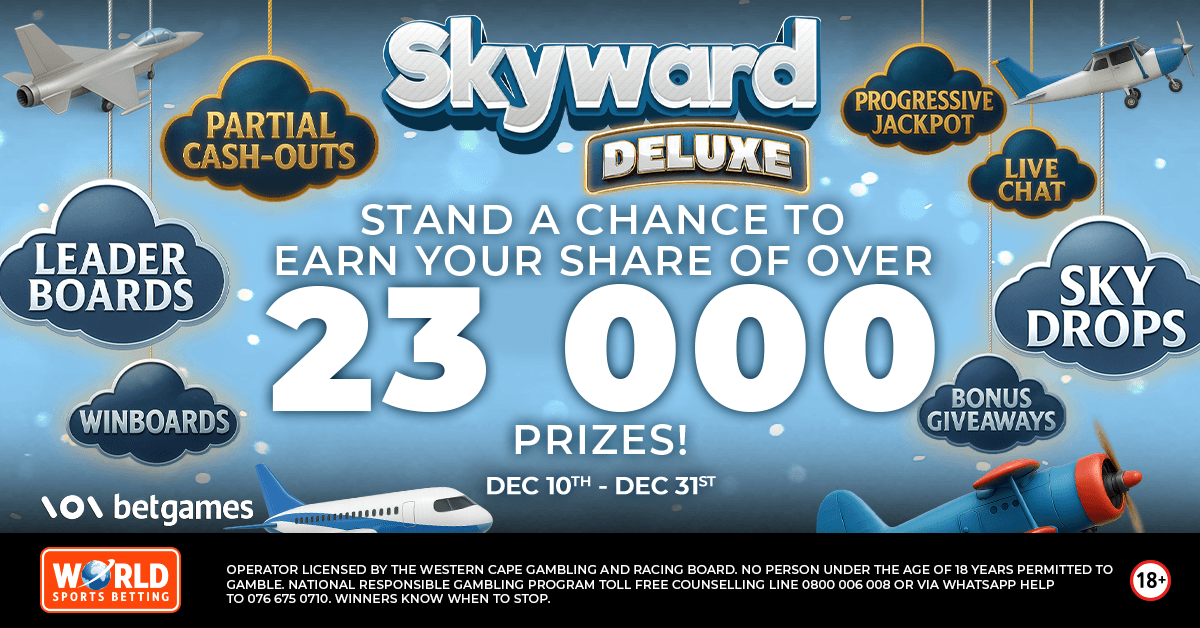 The festive season just got even more exciting at World Sports Betting with the launch of the Betgames Festive Network Promotion, running from 10 – 31 December 2025. This December, simply play Skyward Deluxe and you could earn your share of more than 23,000 incredible prizes, including instant Free Bets and leaderboard rewards.