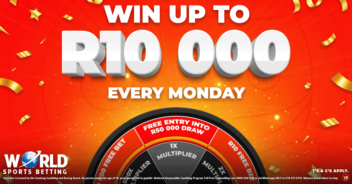 Mondays just got a whole lot more exciting at World Sports Betting! Get ready for Monday Madness Spins, where you can win up to R10,000 in Free Play every single week and claim your share of R3,000,000 in Free Play prizes! Plus, every spin gives you automatic entry into the massive R50,000 Cash Prize Draw!
