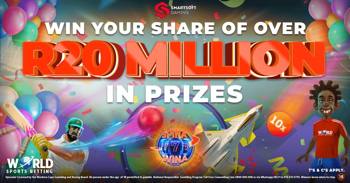 Get ready to spin, win, and celebrate with Smartsoft and World Sports Betting this June! With a jaw-dropping R20 million+ in prizes to be won, the Smartsoft Spin & Win Promotion promises instant rewards, thrilling gameplay, and non-stop excitement β all at the click of a button.
