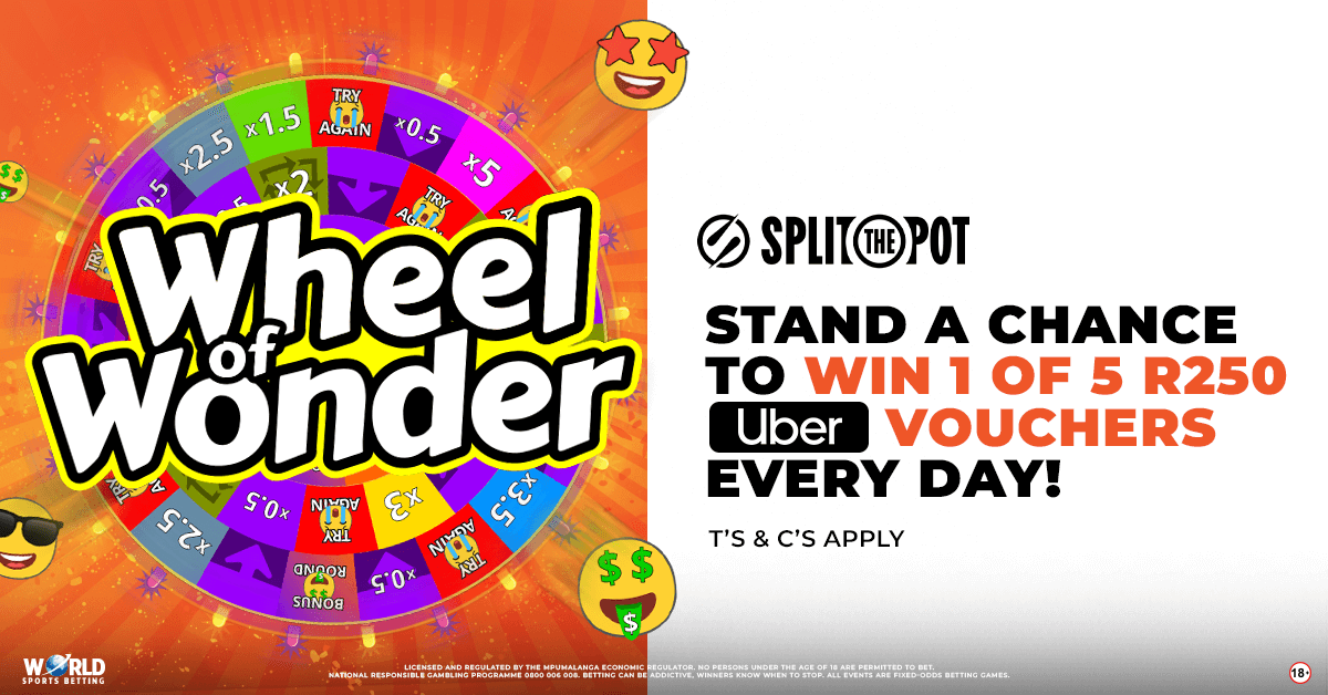 Start spinning the Wheel of Wonder and you could be riding in style thanks to World Sports Betting. Don’t miss your daily shot at one of five R250 Uber vouchers.