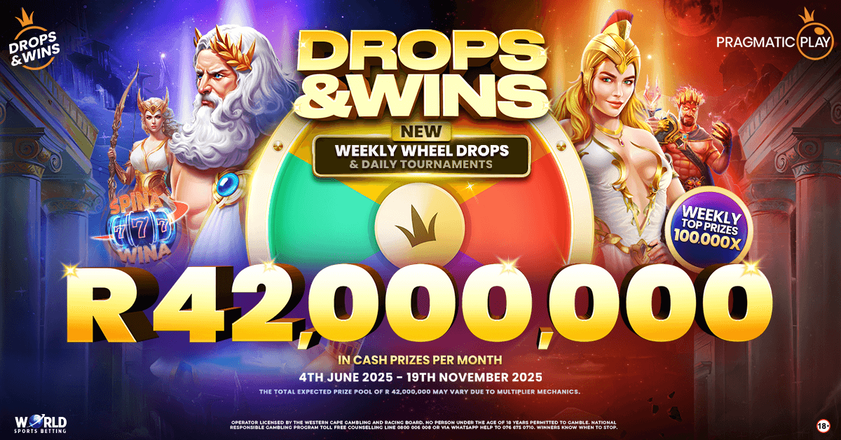 Get ready for non-stop excitement and massive daily prizes – the Daily Drops & Wins campaign is now live at World Sports Betting! With a jaw-dropping prize pool of R42,000,000, this is your chance to strike it big simply by playing your favourite online slots.