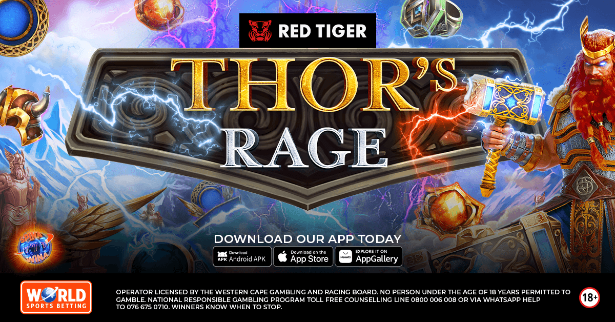 World Sports Betting: Authorized betting operator promoting responsible gambling. Participants must be 18+. Winners know when to stop. For support, contact the South African Responsible Gambling Foundation at 0800 006 008 or WhatsApp ‘HELP’ to 076 675 0710. Your safety matters to us.