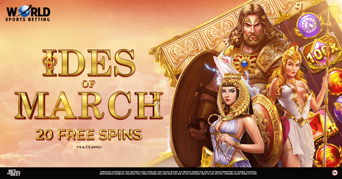 The Ides of March is here, and at World Sports Betting, we’re celebrating in style! For one day only, on 15 March 2025, you can claim 20 Free Spins on some of our most thrilling slot games.