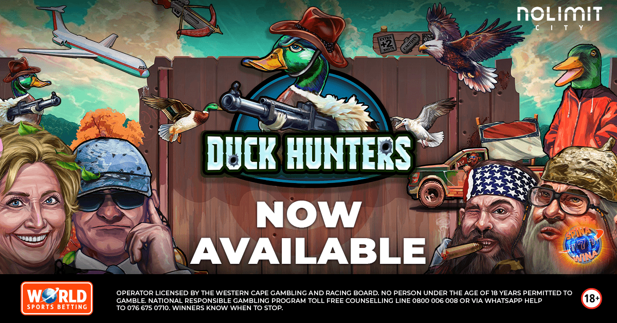 Available now at WSB.co.za, Duck Hunters offers a wild ride packed with cascading reels, xWays symbols, bombs, and an incredible max win of 30,000x your stake. Out here, every spin is hunting season.