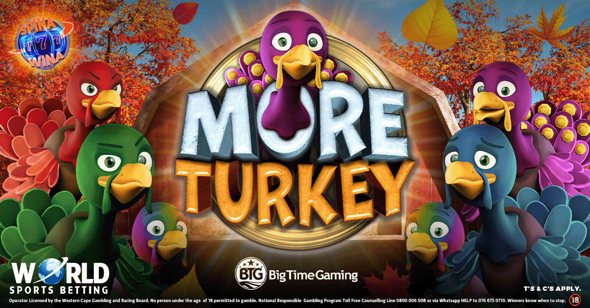 Step into a world of holiday cheer with More Turkey, the ultimate Christmas slot from Big Time Gaming! With up to 117,649 ways to win thanks to the iconic Megaways™ feature, this festive feast promises endless excitement. The Extra Reel adds even more seasonal surprises, while golden roast Scatters unlock the Free Spins Gamble for a chance to win up to 24 Free Spins. Celebrate the season with explosive action, unlimited win multipliers, and Bonus Buy for instant festive thrills.