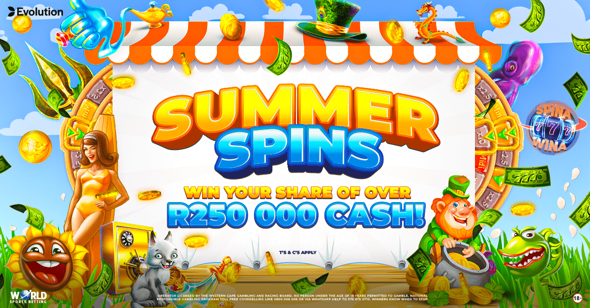 This summer, World Sports Betting is turning up the heat with our Summer Spins Tournament! From 1 November to 31 December 2024, take a spin on any Evolution Slots game and earn a chance to win a share of over R250,000 in cash prizes! With big rewards for the top 40 players, it’s the perfect way to add some excitement to your holiday season.