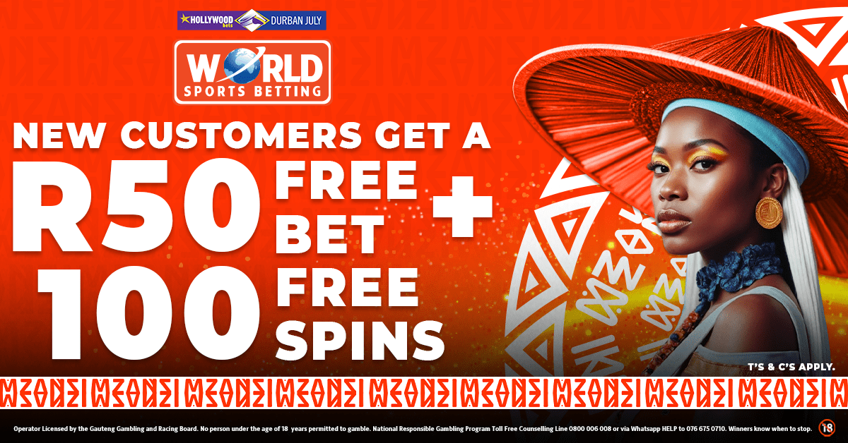 New customers get R50 Free Bet + 100 Free Spins – perfect for your first flutter on the Durban July.
