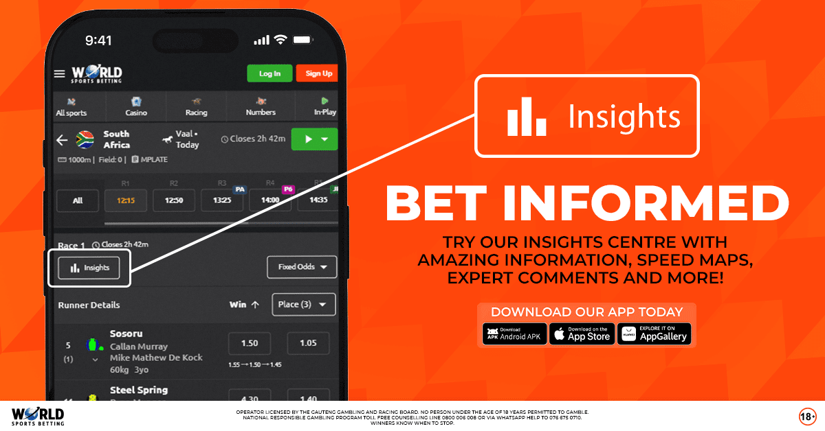 World Sports Betting: Authorized betting operator promoting responsible gambling. Participants must be 18+. Winners know when to stop. For support, contact the South African Responsible Gambling Foundation at 0800 006 008 or WhatsApp ‘HELP’ to 076 675 0710. Your safety matters to us.