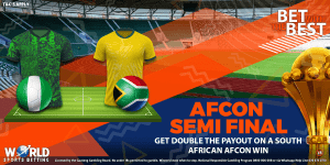 Place a Semi Final straight bet (90 Min or To Qualify) on South Africa and if your selection wins and South Africa goes on to win the Afcon, we will double your payout in Free Bet vouchers up to R2000!